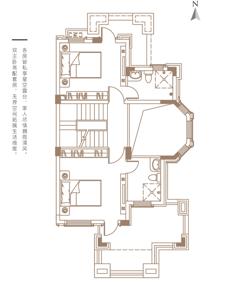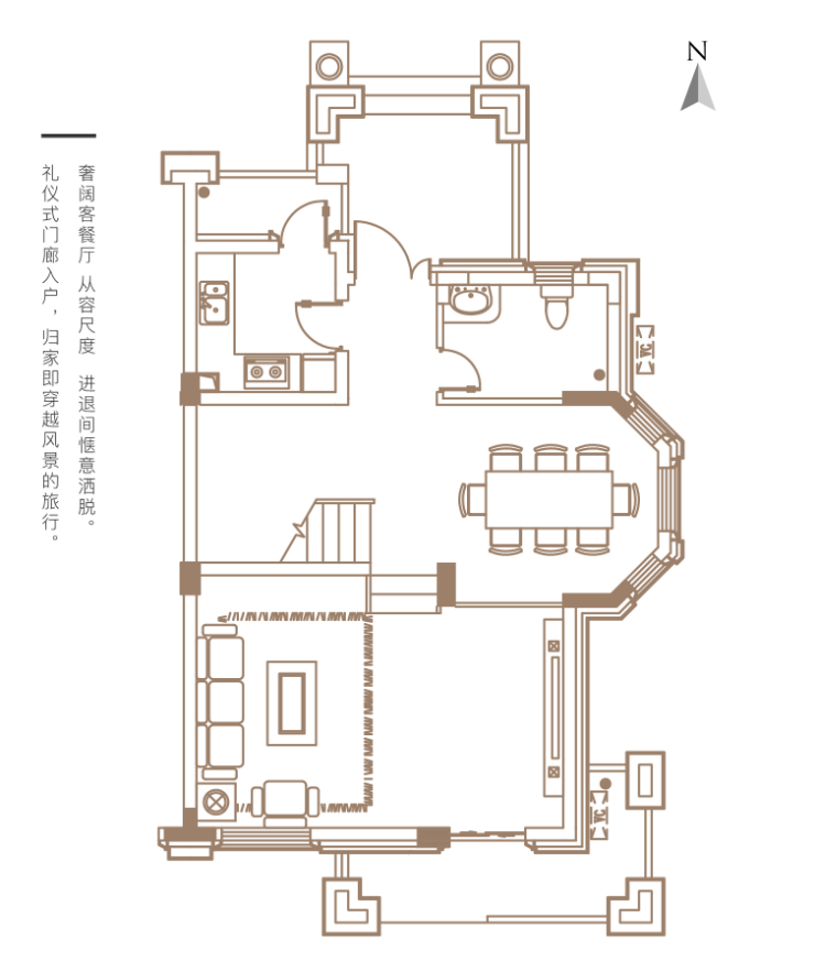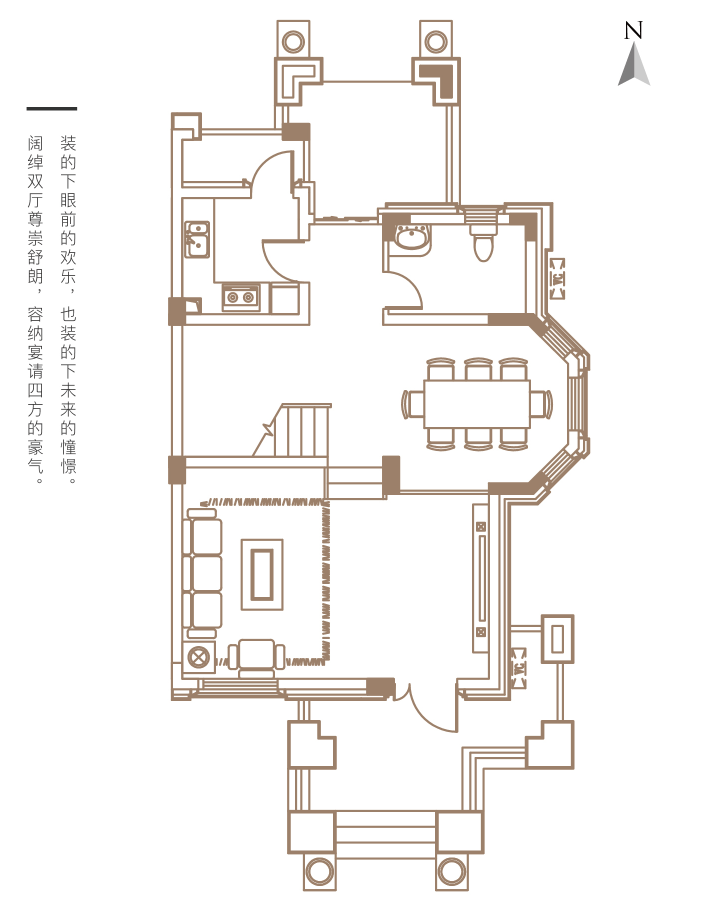 一席宽奢之境,承载从容生活,郎阔厅堂,谈笑风生的会客场;巨幕阳台,生活倾心悦其境;上下三境,和而不扰,志趣场、社交场、休憩场有序分层,生活不被空间所限,尽享舒适高雅领地。