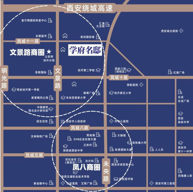 西安市中医院、西安市第三医院、未央光明医院等多所医疗机构环伺,提供强大医疗健康保障,构建城北健康经济圈,提升区域消费驱动力。