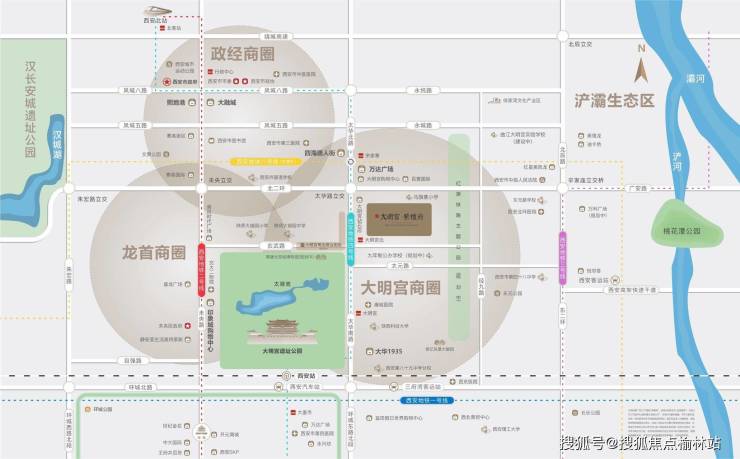 ◆在曲江管委会管辖之下,围绕着大明宫国家遗址公园,官方百亿投资改造板块,擘画大量城市资源,例如轨交、商业、高端住宅资源等,随着一线房企高端改善系列产品落地,大明宫实现品牌蜕变,逐渐成为城北高端核心居住区。