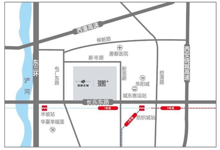 1/6/9三线地铁/半坡/纺织城两站中心