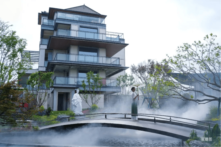 宋意园境:山水比德匠心造园。师法《千里江山图》,以望山水廊、横渠山房、水石雅舍贯穿大、中、近三大分区,打造“溪山行旅、曲水流觞、飞虹叠瀑、花溪廊桥、松林长卷”五大画卷,再现雅宋园林风骨
