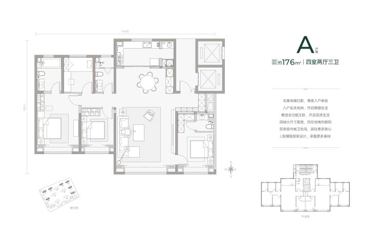 在售户型:建面约176-218㎡奢舒四居