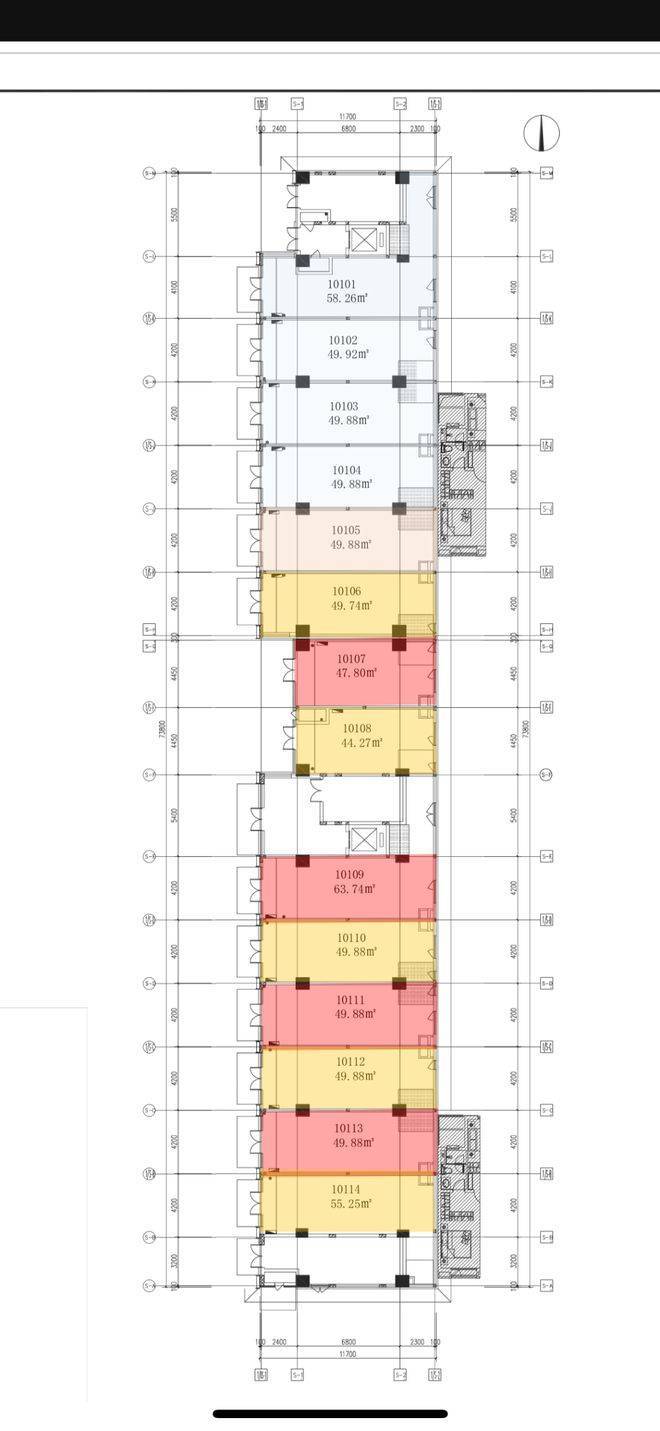 项目产品:目前在售的都是纯一层,面积区间44-63,层高五米,可支持明火餐饮,周边商铺租金160-200, 单价37000一39000