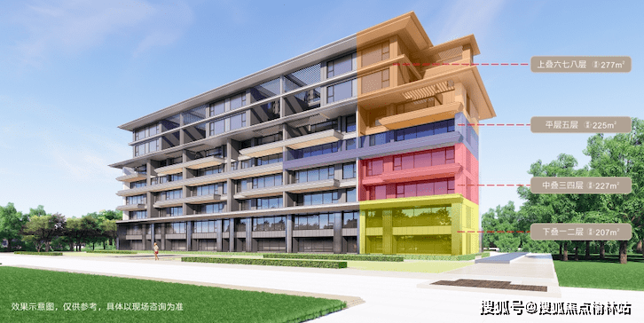 整体规划:5栋小高层、8栋院居叠拼