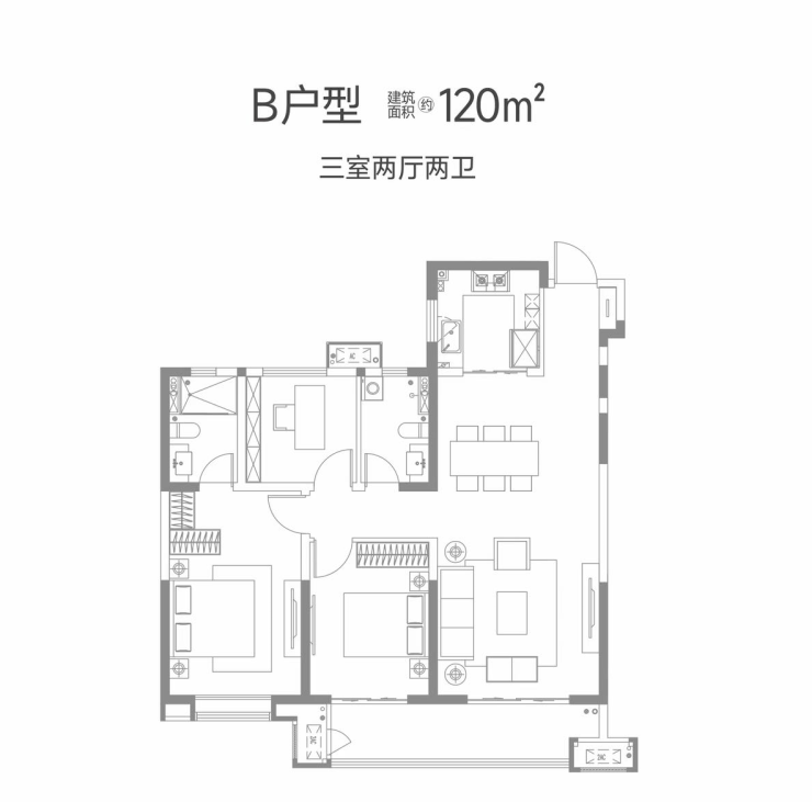 开盘户型:100㎡三室两厅一卫;120㎡三室两厅两卫