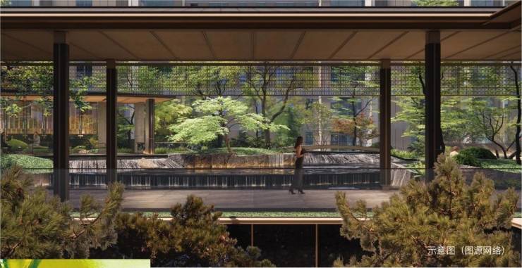 盛唐宫苑飞檐为灵感,约36米巨幅恢弘屋檐,7.9米挑高门厅,融合酒店式落客前场、高门台基,多重水境精奢石材与名贵树种,塑造层层叠翠归家仪式,再现名门世家威仪。