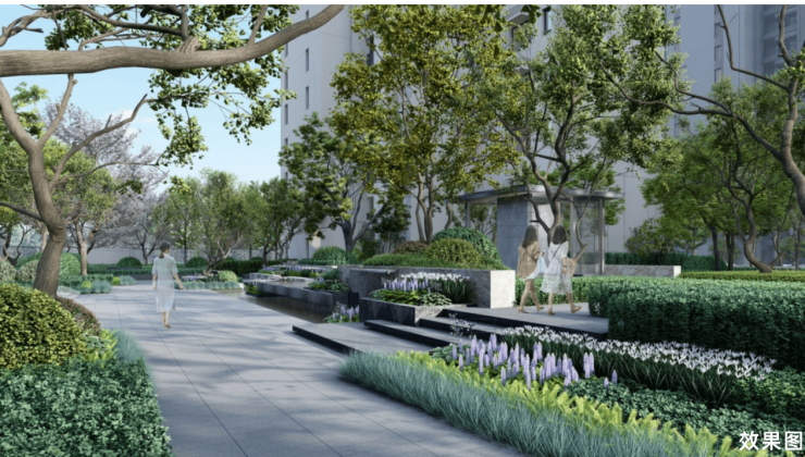 境阅里:都市森境园林体系设计理念:都市森林,方间山水。景观结构:一轴一环八大健康森居场景。一轴:森氧绿轴归家路线。一环:约365m悦享健康环,约120m快步道。