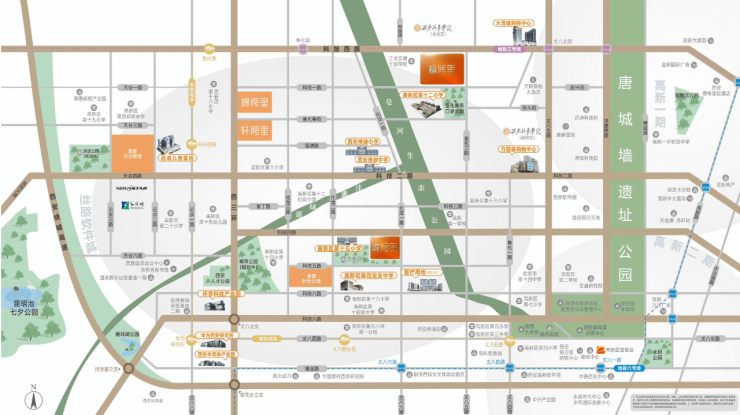全维配套 软件城高阶生活圈项目位处丝路软件城生活服务中心区,高新区产城融合的焦点片区。教育、交通、商业、生态、医疗资源丰盛。
