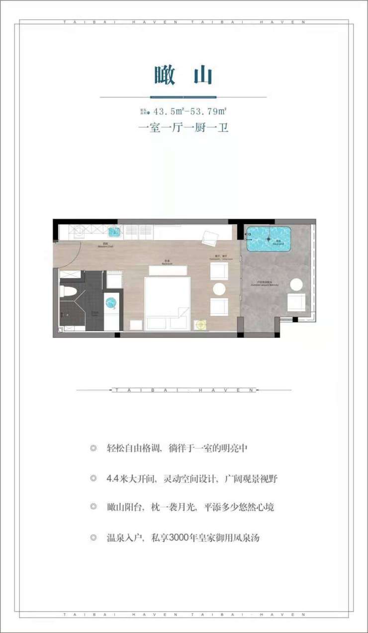项目占地约168亩,总开发分三期,一期汤舍 二期汤巢 三期汤品,项目地处太白山脚下,自然旅游资源优渥,同时有分时度假体系,让业主在投资太白山资产之外,享有全球旅游度假资源