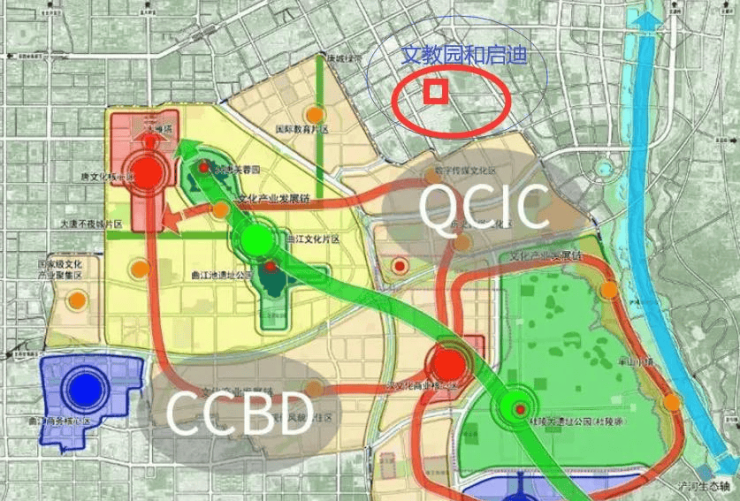 目前曲江分为曲江一期、曲江二期,两大板块,其中曲江二期又分为CCBD西安中央文化商务区和QCIC国家级文化产业聚集区,而从地址上可以看到启迪大院儿项目北临延兴门二路,东临公园南路,西临规划路,南临金犊路,属于曲江二期QCIC板块的核心位置,自有教育配套及周边教育、商业、医疗、交通配套完善,公园众多,且临近西安交通大学、理工大等高等学府,人文氛围浓厚,拥有曲江二期文化商务产业聚集区(QCIC)带来的产业配套服务之外,还可以享受曲江一期生态景观资源,兼顾便利生活条件与高尚品质生活!