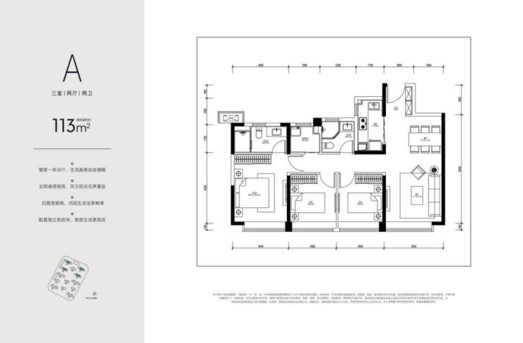 高层:113㎡三室两厅两卫