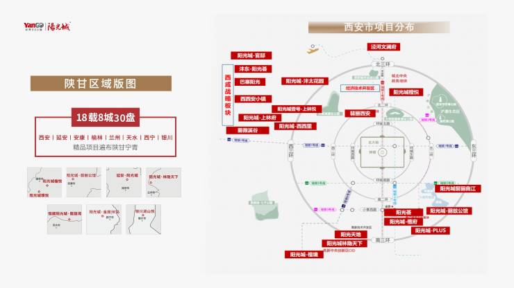 2005年进驻陕甘区域,先后布局陕甘宁青4省累计开发27个精品项目,2017年-2018年陕甘区域连续两年销售额突破百亿