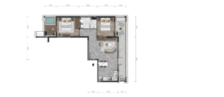 A户型【阅山境】建面约72㎡ 两室一厅一卫