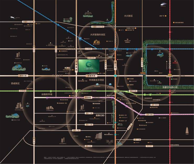 项目择址“大西安金腰带”二环主城区,踞守高新北门户,约3KM即达高新科技路CBD,享受主城与高新双重资源配置。