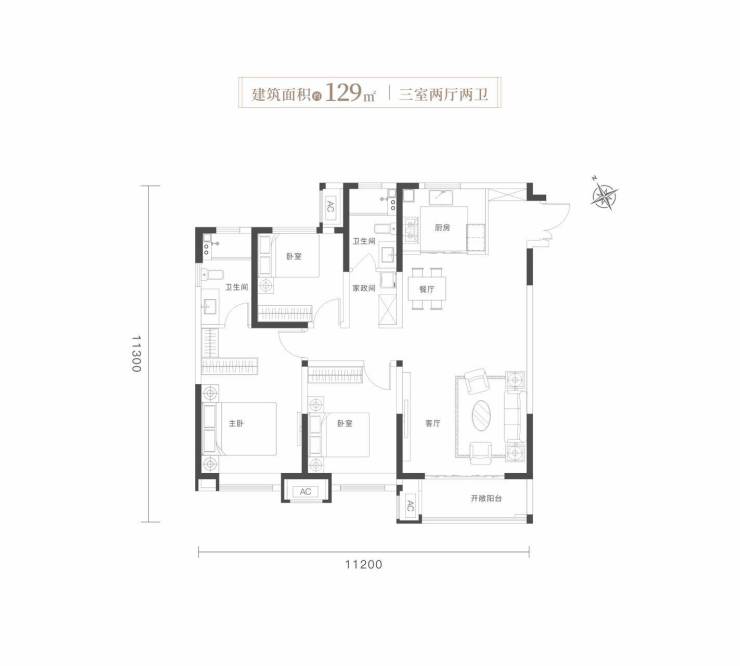 宽境横厅|双卧套房|全明三卫|餐厨一体|家政空间