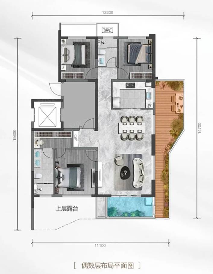 ·悬浮院境:约6米挑高空中露台,家家有花园、户户有院落、处处是风景。