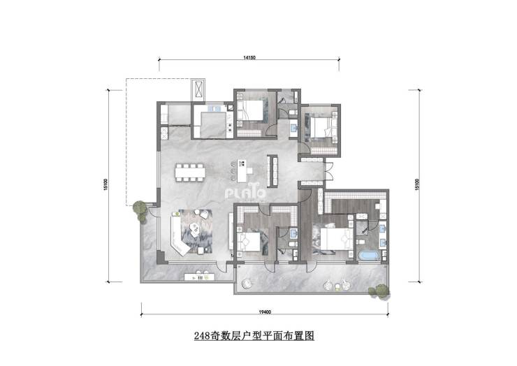 248平四房两厅三卫,19.4米大面宽,南向双套卧,三明卫的户型设计,主卧同样也设计有步入式衣橱,让您生活满满的仪式感。