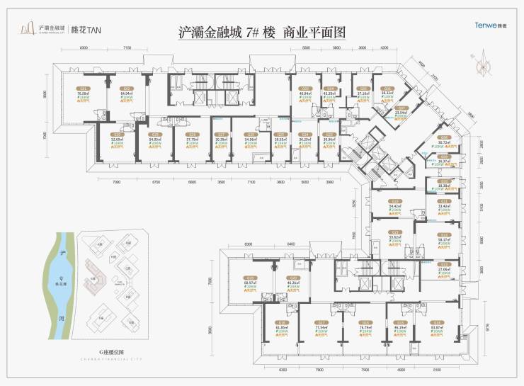 楼栋状况:7栋楼(A座写字间;B座SOHO;C座、D座LOFT+平层;E座行政公馆;F座、G座一线河景大平层)