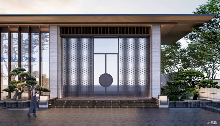新中式现代美学立面,简约大气。甄选香槟色木纹铝板、LOW—E中空玻璃、真石漆、石材等考究材料,香槟金、灰、白等高级色系和谐搭配,臻成主城繁华之上的耀目风景。