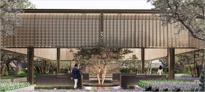 将自然引入各个打破建筑与自然的边界下沉式庭院森林茂密,与5个架空层泛会所,4大空间相互呼应,形成立体景观。精心挑选多种树木,带来四季景致与情感慰藉,实现“树宅相守”,增添生机与活力。