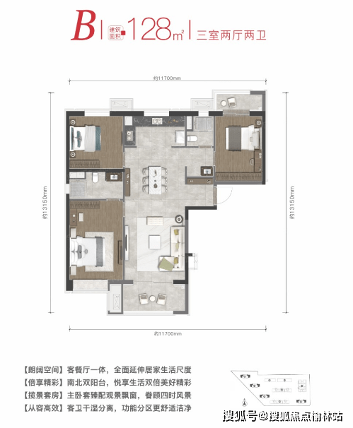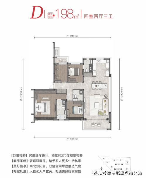 三室两厅两卫的户型有110㎡,128㎡,143㎡,四室两厅两卫户型有198㎡,在这个快餐时代,在什么都讲究效率的时代,万科东望给了属于你的私人空间,让你在忙碌的工作中找到自己的生活与港湾。