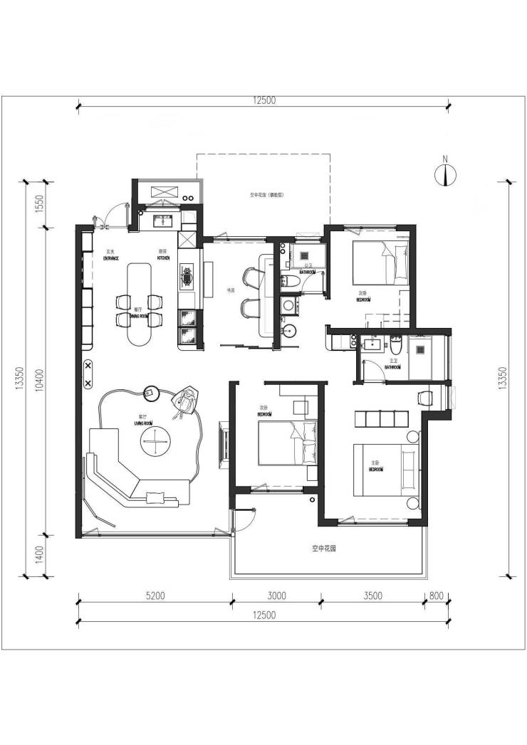 CID唯一120平以下得房率最高的5米宽厅的第四代住宅,得房率约90%,相当于第三代住宅建面140平户型的空间尺度