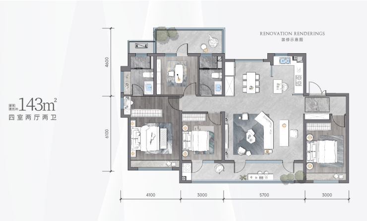 2、143㎡四室两厅两卫