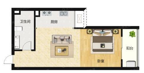 1室1厅1卫/建面42m2/东/ 1套