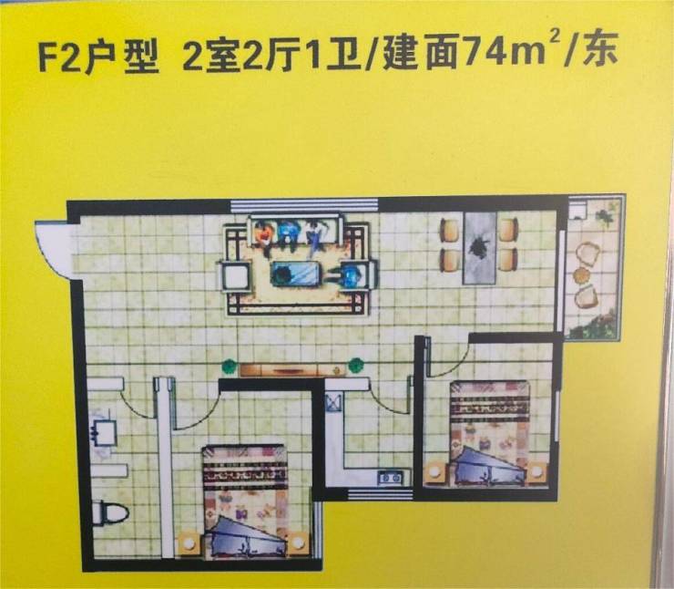 F2户型 2室2厅1卫/建面74㎡/东/ 19套