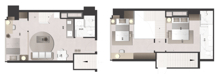 全国首创六合式LOFT,共享楼梯实现双层双门双套房