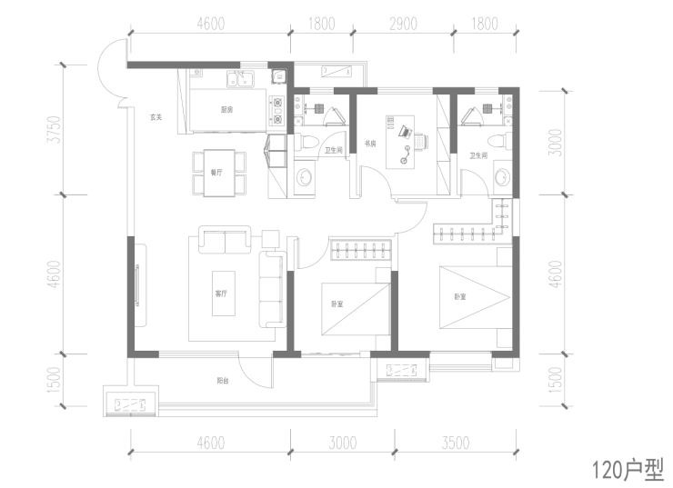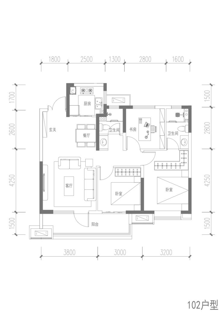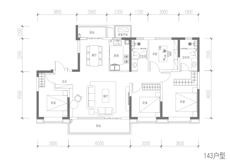 面积:102㎡、120㎡、132㎡、143㎡、168㎡、顶跃