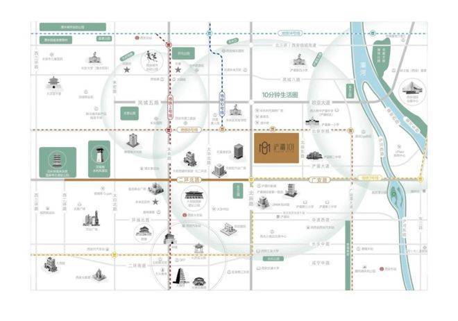 项目自带高阶商业配套星级酒店水疗会所、蜗牛健身房、万邦书店;大型商圈包围:3万方永坤生活广场、1.3万方麦德龙、18万方红星美凯龙、迪卡侬、浐灞印象城、大明宫万达、四海唐人街、Upark国际悦邻荟、万和城、龙湖未央天街等集中商业中心。周边赛高街区、世纪金花商圈,凤城八路熙地港、大融城等醇熟商圈环伺,纵横繁华主场。本项目坐拥醇熟资源,聚拢高密居住人群消费,商业价值洼地!