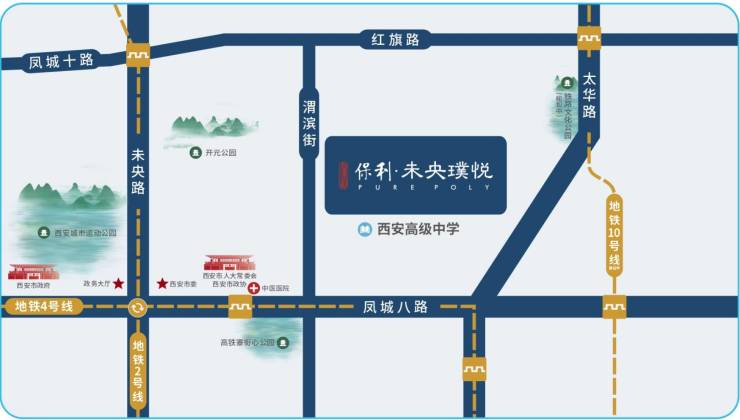 紧邻太华路/凤城八路/未央路,通达全城,接驳地铁2号线/4号线/10号线(在建中)/西安北站,贯通全城,辐射全国。