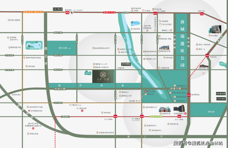 ◎樾享便捷多元立体交通脉络,距科技八路快速干道约0.5公里,距锦业路约1.8公里,距唐延路约3.1公里,近达地铁六号线丈八四路站、高新首条在建云轨丈八西站(规划站)。