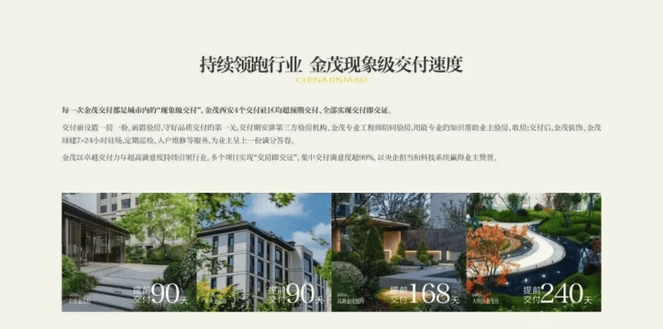 每一次金茂交付都是城市内的“现象级交付”,金茂西安4个交付社区均超预期增配交付、提前半年以上交付、全部实现交付即交证。