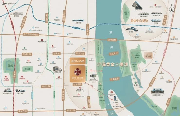 浐灞黄金三角洲作为浐灞高规格打造的国际交往板块,这里坐拥有灞河最宽的河面、千亩广运潭公园和中亚公园等分列两岸;欧亚论坛永久会址+西安领事馆区,打造西安重要的对外展示窗口;更有亚马逊、腾讯等世界500强落户以及艾美、锦江国际、凯悦等高端酒店集群,是西安重要的涉外核心功能承载区。