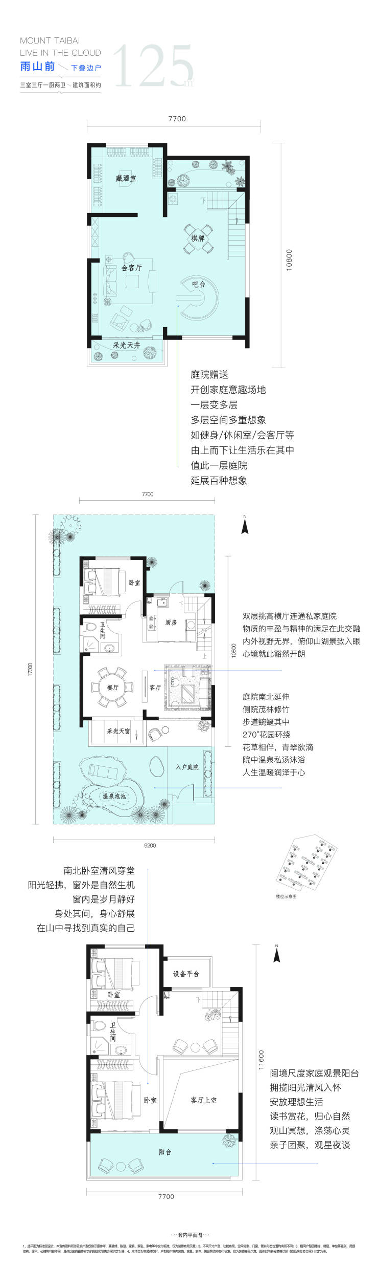 朗阔挑高:太白山同级别产品层高最大3.1米,下跃挑高6.2米