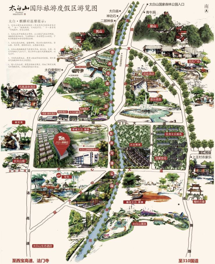 太白·麒麟府位于太白山国际旅游度假区核心位置,西侧紧邻太白山游客服务中心。项目东侧为农夫山泉八大饮用水生产地之一,北侧为陕西汤峪龙源国家湿地公园,集聚山景、水景、林景等多种自然风光,是大西安的生态后花园。