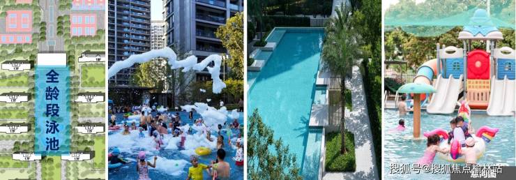 【社区配套】社区泳池:社区内配置标准室外泳池,同时引进造浪机、泡泡机等设备,搭配灯光音箱设施,使水景焕发活力,打造互动感超强的音浪泳池。