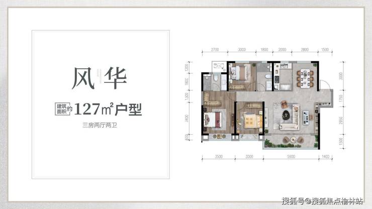 127㎡(三室两厅两卫)可变3+1室