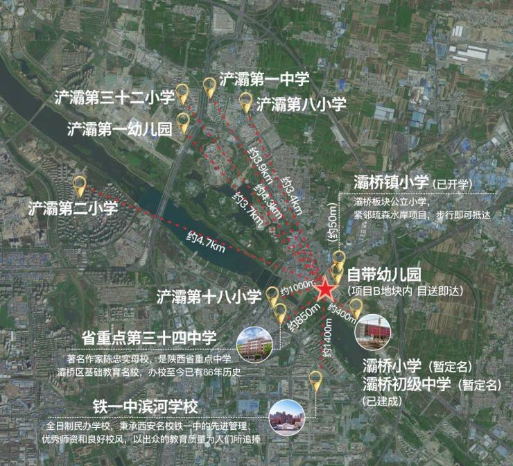 教育丰富:自身配备约4665㎡幼儿园,周边西安滨河学校(原铁一中滨河学校)、34中,南侧新建灞桥小学(暂定名)、灞桥初级中学(暂定名)(教育信息相关来源于网络,具体以政府相关主管部门、机构公开最新信息为准);