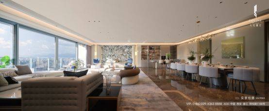 3.9米层高+全景落地窗设计,毫不费力捅破西安豪宅上限,辅以石材,皮革,木饰面等高奢定制,空间感绝无仅有,同时也保证了居住功能的舒适度和品质感。