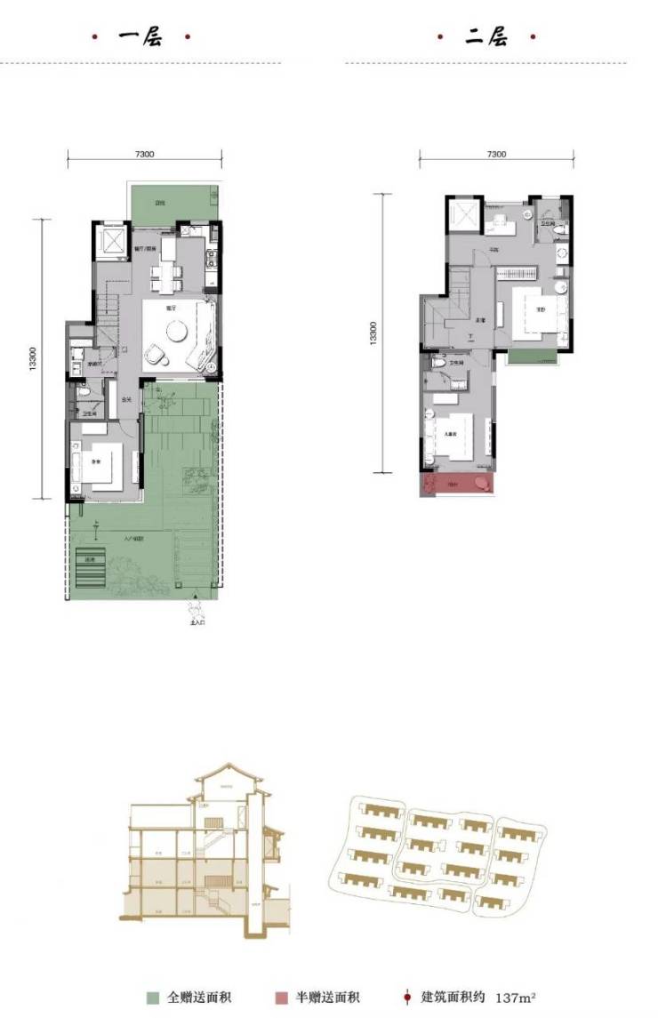 下叠约137㎡,南边花园