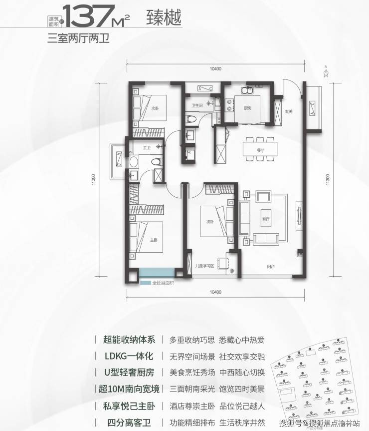 【住宅部分】住宅地块规划户数2471户,共计29栋小高层住宅,户型面积段为95㎡-137㎡,均为三室两厅两卫格局。住宅定位为高品质、高性价比大城社区,聚焦年轻人生活需求与归属。