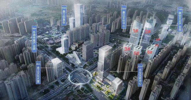 项目位于曲江二期QCIC(国家级文化产业聚集区)核心位置,由曲江管委会全资控股的曲江文商集团旗下丰欣置业开发,分两期开发,一期四栋百米写字楼,预计年底交付,二期由两栋238米超高层双子塔与一栋百米甲级写字楼组成,预计明年底交付。整个项目与旺座曲江,曲江创意谷,彩虹谷,西安文旅超高层等组成了以文创,文化,文旅产业为主涵盖了酒店,金融,商业运营,电商服务,电子竞技等产业的办公写字楼集群。
