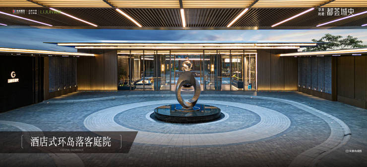 汲取宝格丽酒店迎宾礼遇,打造近600㎡环岛式落客庭院。庭院中岛甄选顶级石材“绿钻”潘多拉奢石,设计莫比乌斯环水景艺术雕塑,呈现奢适雅静的归家体验。