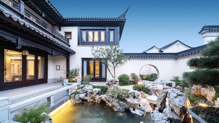 百余次拜访香山帮,造访江南四大名园,借鉴传统苏州园林理水造景之法,特邀专业古建园林设计团队——太湖古建设计单位纯手工匠心造园。五进归家礼制,中式人文雅著,重塑世家风雅。