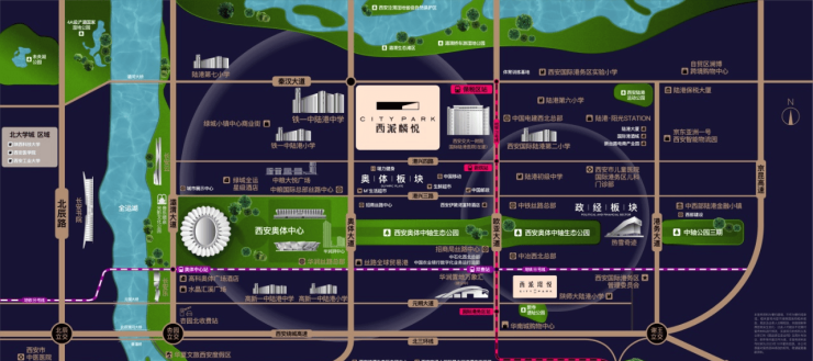 中国铁建西派麟悦位于港务区最炙手可热的奥体板块,西侧一路之隔就是铁一中陆港中学,东侧为西安交大第一附属医院,距离奥体中心不到2公里,地段含金量不言而喻。