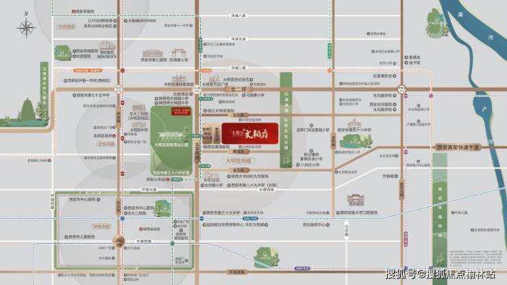 大明宫·文韬府项目位于西安市未央区太华路与太元路交汇处向东约260米处,与5200亩世界级中央公园大明宫遗址公园距离仅566米,占据大明宫板块核心低密住区,是大明宫板块唯一一个全盘18层的纯粹小高层,2T2户纯板式结构社区。