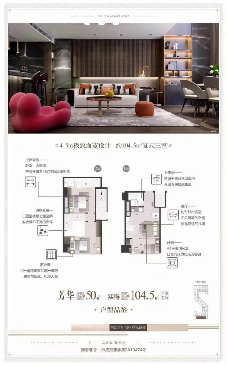 全国首创六合式LOFT,共享楼梯实现双层双门双套房